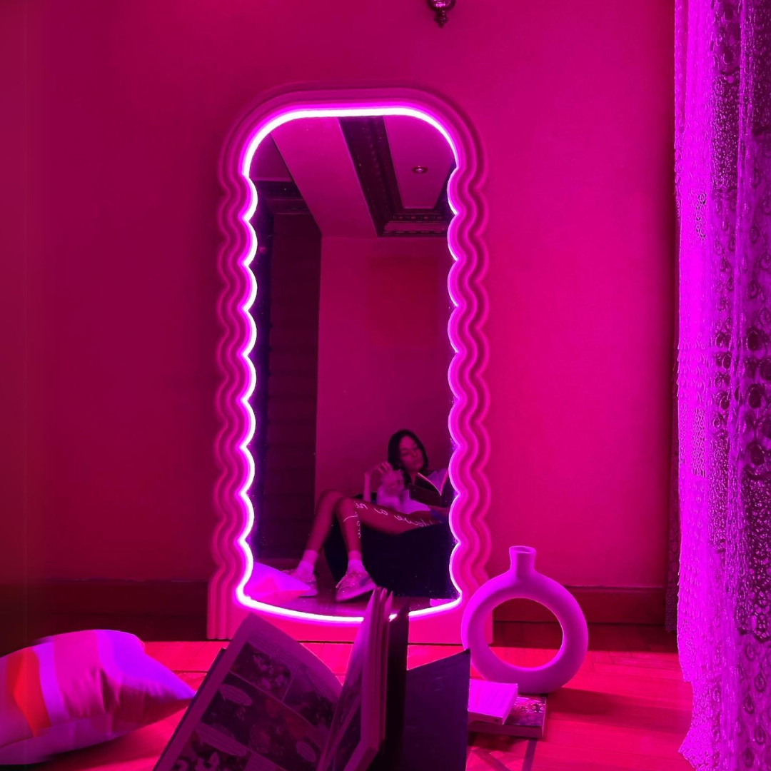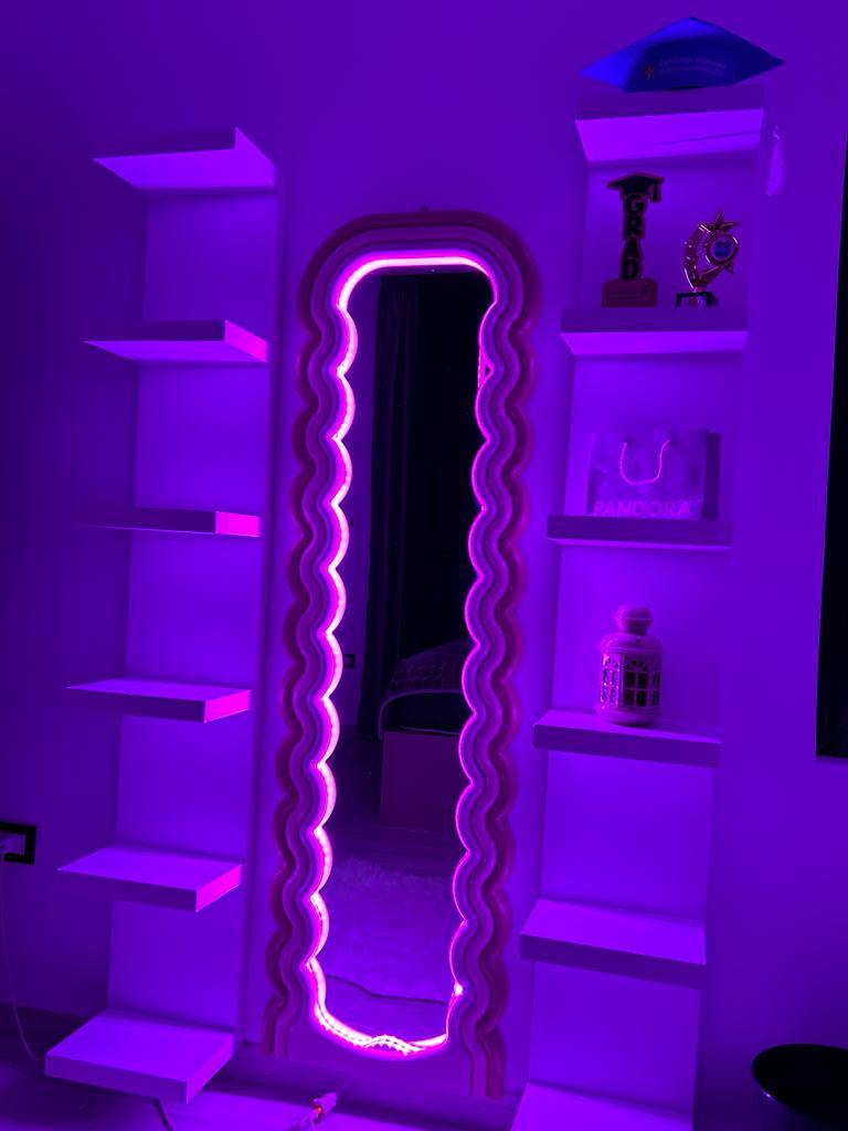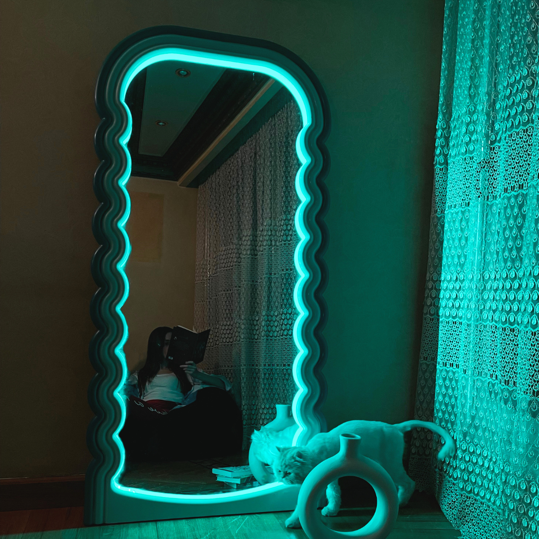 Experience the excitement of the Glowy Edition Feel the Fluff Mirror and light up your space! Transform any room with its curvy, smooth design that emits a calming, colored LED light. Make your room stand out and create an atmosphere of serenity and tranquility. Handcrafted with the finest and strongest materials.