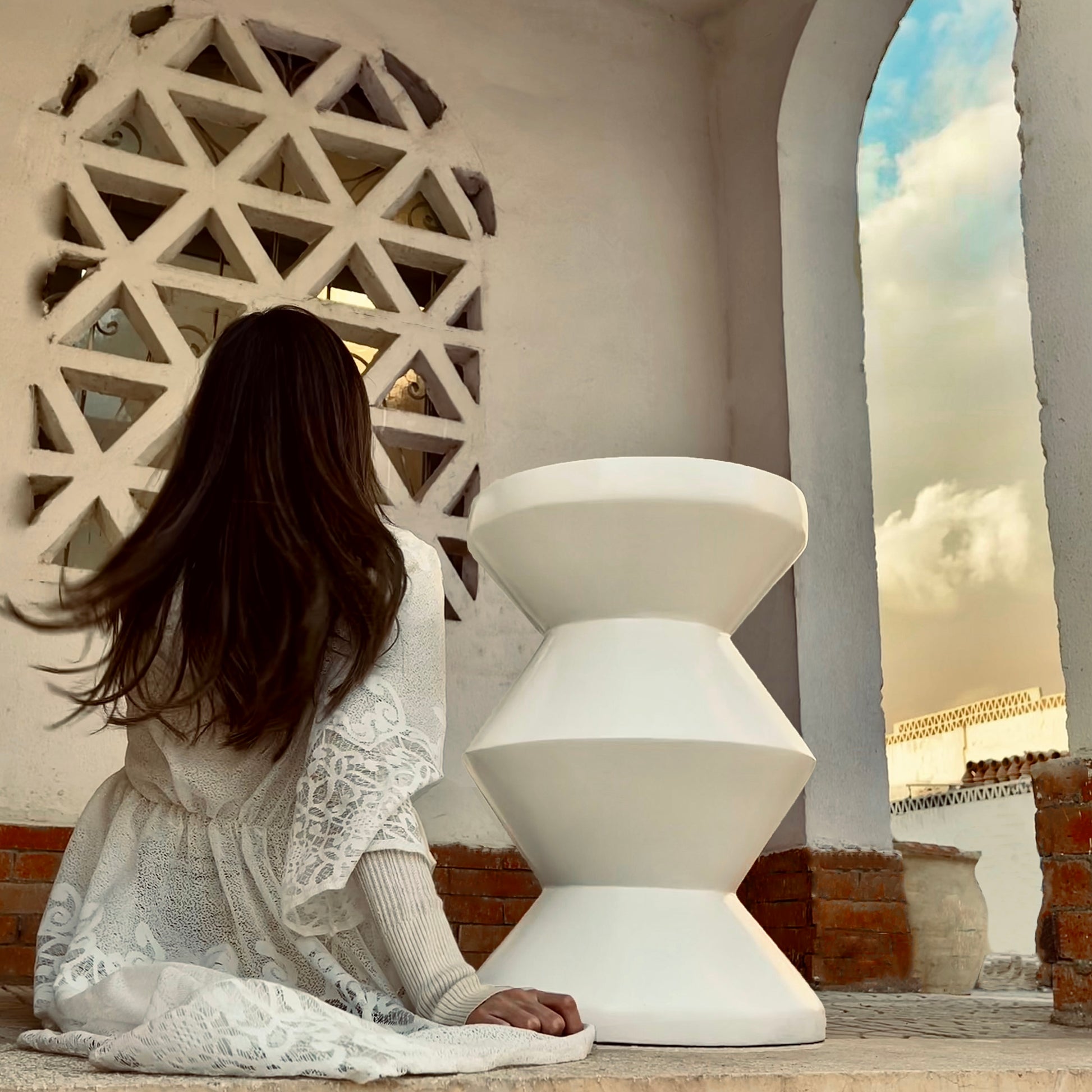 Introducing The Sharp Curved Side Table/Nightstand - a versatile and stylish addition to any space. Its neutral color enhances the overall aesthetic with a perfect touch.