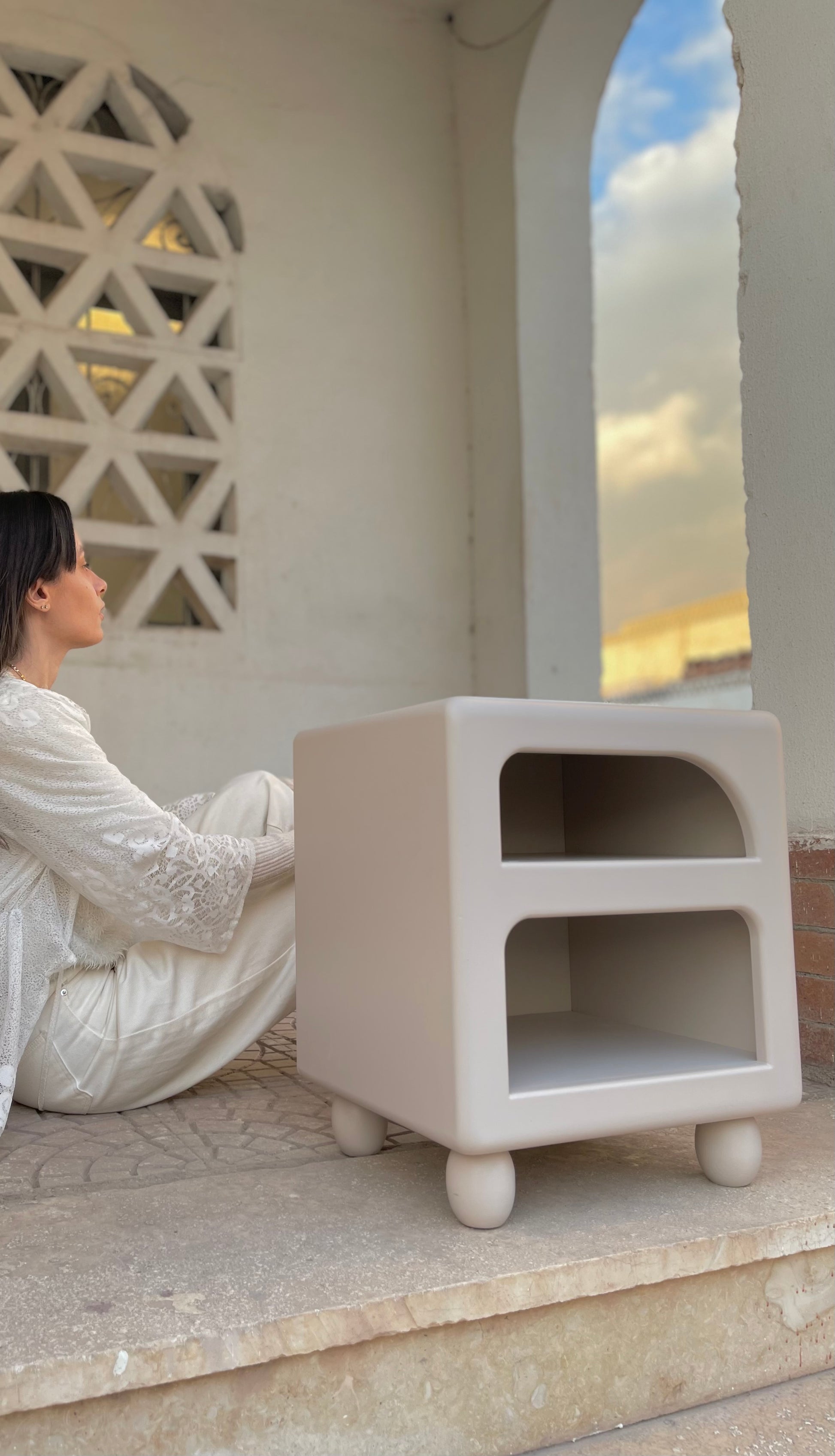 The Utopian Night-Stand boasts an earthy appearance with uniquely curved legs and a non-traditional shape. It effortlessly adds a touch of creativity and simplicity to your space.
